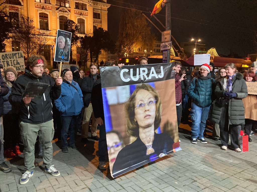 A treia noapte de proteste la Cluj: peste 1.000 de oameni cer demisia Liei Savonea și demiterea lui Cătălin Predoiu / Fosta judecătoare Andreea Chiș,