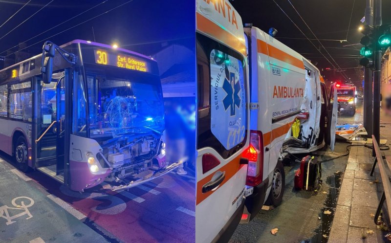 "În accident au fost implicate un autoturism, o ambulanță a Serviciului de Ambulanță Județean și un autobuz. În ambulanță s-a aflat o pacientă blocată, spre care pompierii au creat acces folosind echipamentele din dotare. Mai exact, din primele date, ușa ambulanței fusese avariată și blocată. Femeia are aproximativ 40 de ani, este conștientă și cooperantă, primind îngrijiri medicale din partea unui alt echipaj SAJ", a transmis ISU Cluj.
