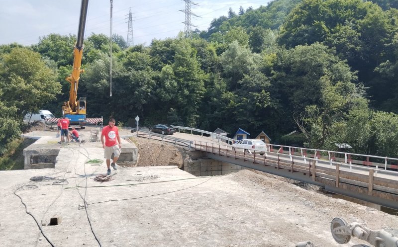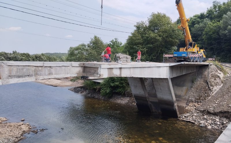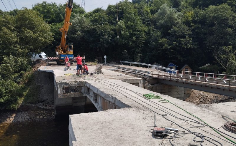 Foto A început demolarea vechiului pod din Someșul Rece! Pe unde se va circula până când va fi gata cel nou