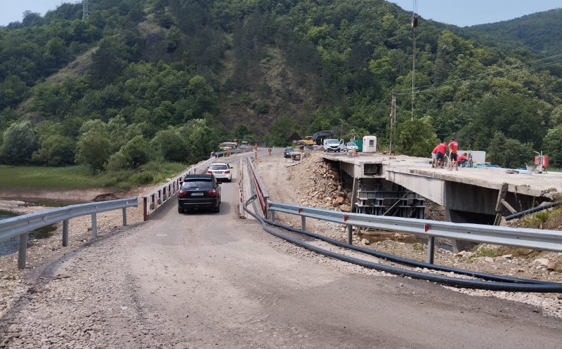 Până la edificarea noului pod, pe actualul amplasament, traficul rutier este deviat pe podul provizoriu construit de forul administrativ județean în amonte. Acesta are o lungime de 45 metri și este unul solid, construit pe o structură metalică, circulația desfășurându-se alternativ, pe o singură bandă.