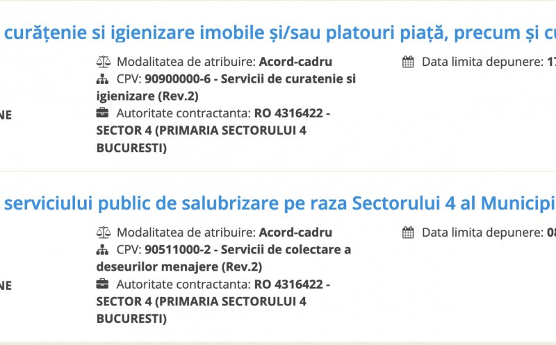 La patru mii de kilometri distanță, Primăria Sectorului 4 tocmai se pregătea să atribuie un contract mamut de salubritate și deszăpezire în valoare totală de 1,5 miliarde de lei (peste 300 milioane de euro). Cam o cincime din bugetul instituției. Serviciul de curățenie publică urma să fie concesionat timp de un cincinal printr-un acord-cadru și câștigătorul licitației trebuia să încaseze peste 60 de milioane de euro pe an. Asta înseamnă cu 13 milioane mai mult decât la Sectorul 1 (47 milioane euro), unde prețul a generat scandal major între edil și compania de salubritate. Plicurile cu ofertele trebuiau depuse până pe 8 noiembrie, după aproape nouă luni de la publicarea anunțului de achiziții (martie). Șase competitori s-au înscris la licitație. Printre ei, un consorțiu condus de Rosal Grup (din care face parte și firma Blue Planet). Concura totodată și Romprest, operatorul de la sectorul 1.