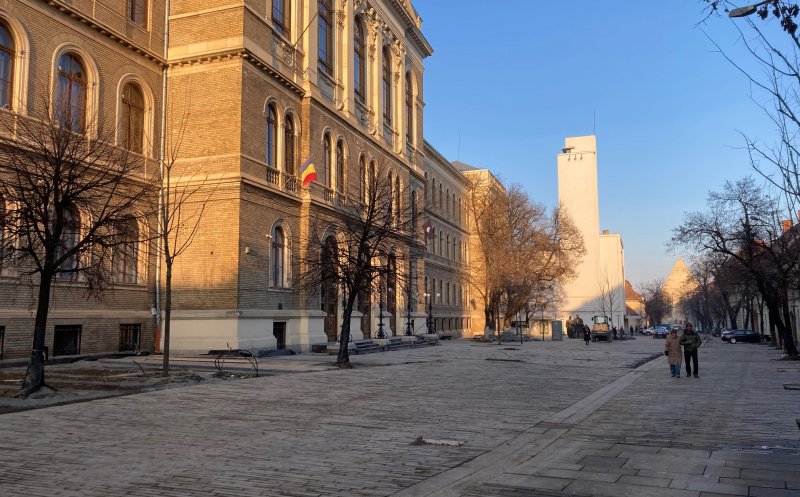 Muncitorii au reușit să pună piatră cubică pe aproape toată strada Kogălniceanu și câteva adiacente. Se lucrează intens pe Universității, însă șantierul este destul de pustiu pe Iuliu Maniu, cuprinsă și ea în proiect.