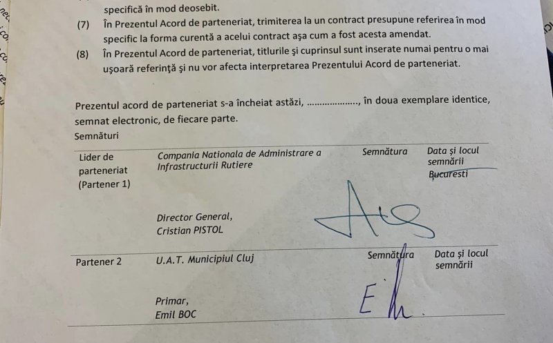 "Am semnat , azi, împreuna cu dl director general CNAIR, Cristian Pistol, și in prezenta Ministrului Transporturilor, dl Sorin Grindeanu, acordul de parteneriat in vederea implementării de catre Primaria Cluj-Napoca a proiectului Centurii Metropolitane a Clujului.