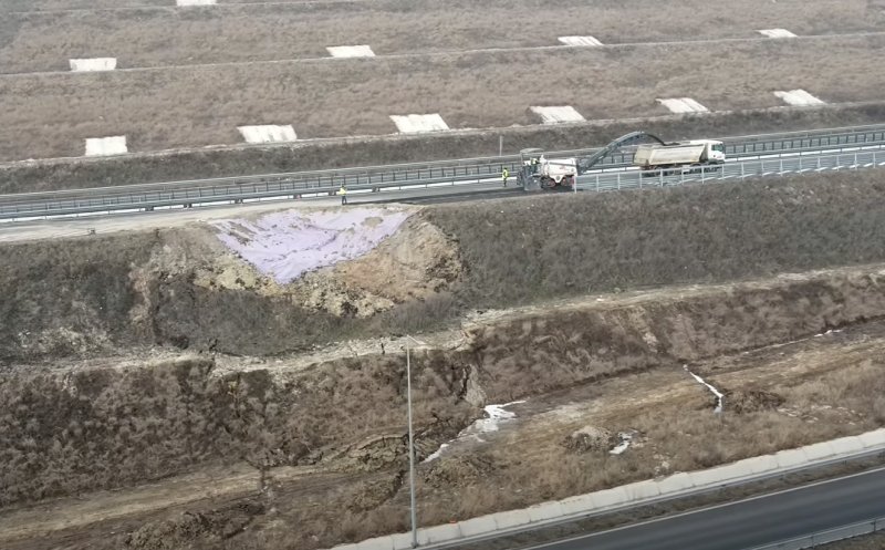 Video Foto Cât de mult a ”mușcat” ALUNECAREA DE TEREN din A10 Sebeș-Turda. De ce o ia la vale Autostrada