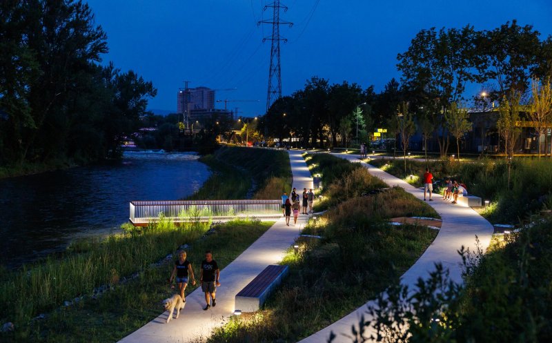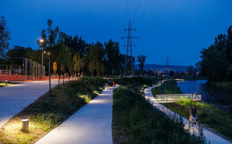 Principalele lucrări incluse în proiect vizează plantarea a 205 noi arbori și 236 arbuști, instalarea de stații de încărcare pentru biciclete/trotinete electrice, sistem de iluminat cu tehnologie LED, mobilier urban modern, zone de joacă și terenuri de sport, precum și extinderea infrastructurii pietonale și ciclistice pe malurile râului.