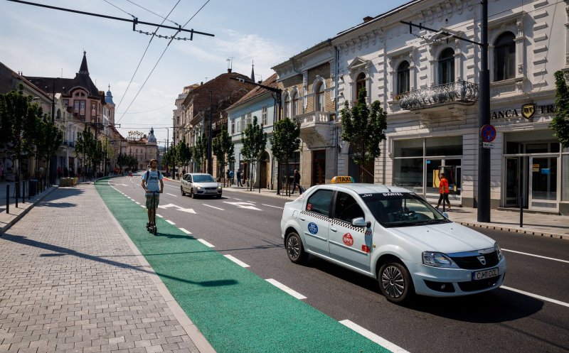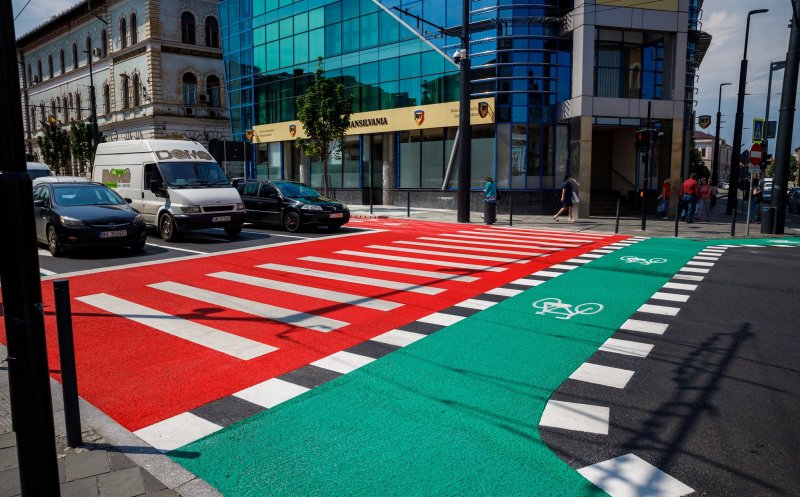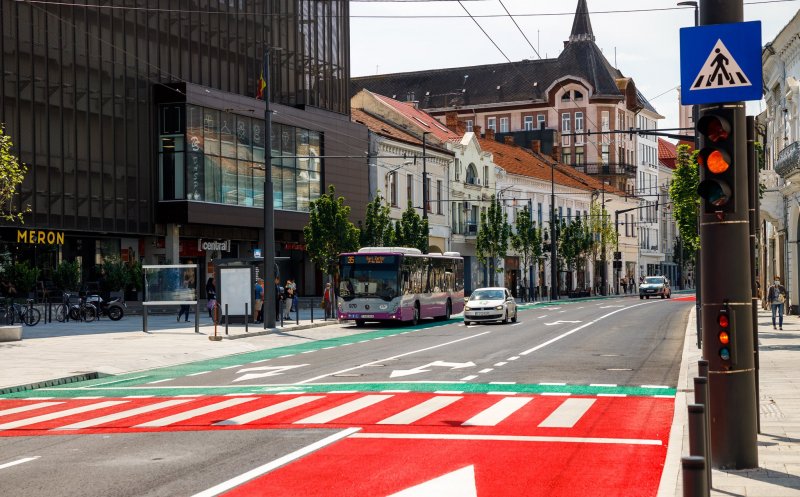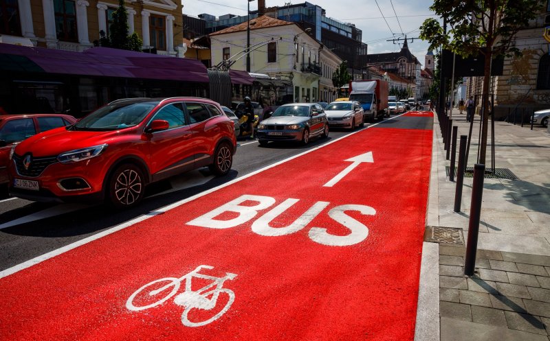 Foto Ferdinand, cu marcajele complete, benzi roşii de bus şi piste de biciclete verzi