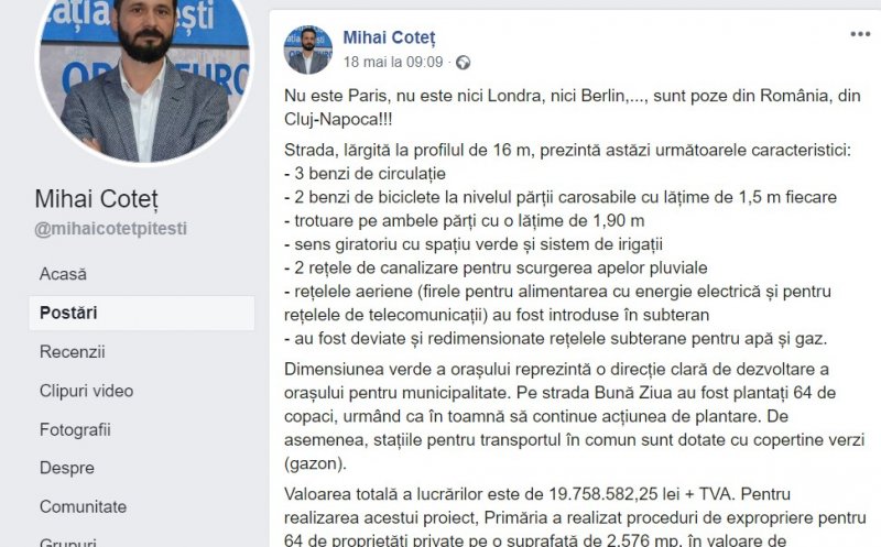 Mihai Coteț : "Nu este Paris, nu este nici Londra, nici Berlin,..., sunt poze din România, din Cluj-Napoca!!!"