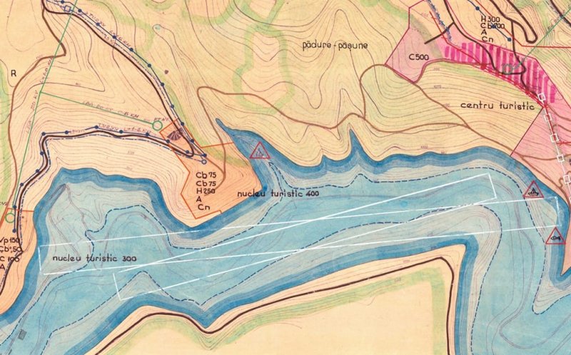 Localitatea Beliș, construită de un arhitect. Zona turistică era prevazuta cu transport pe cablu, iar pe lac erau culoare pentru caiac-canoe