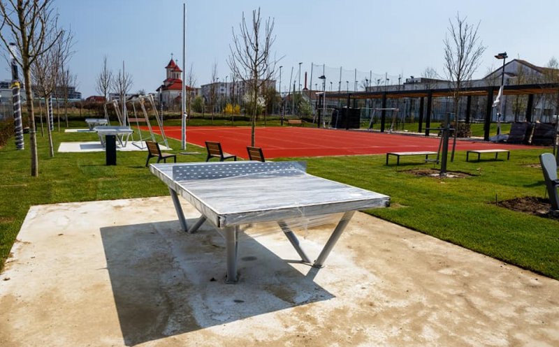 - alte amenajări: Fântână arteziană pavimentală cu jeturi de apă și iluminare LED, pavilion în zona terenului de sport, toalete automate etc.