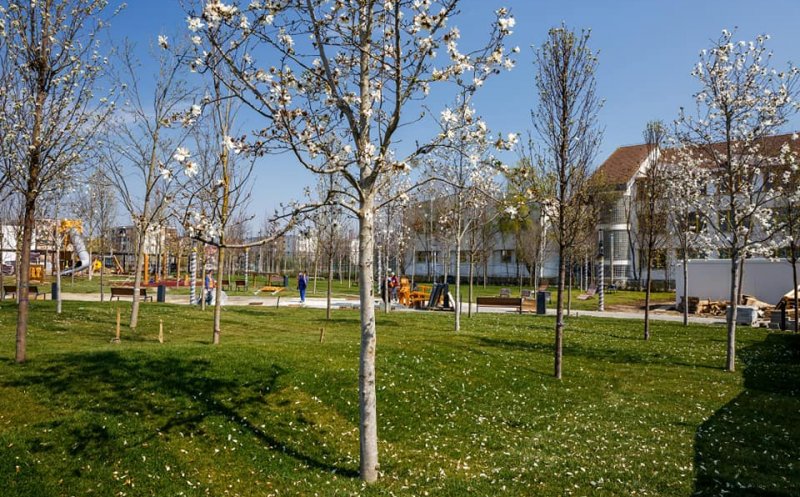 Au fost plantați 165 de arbori și 400 ml de gard viu, flori și arbuști.