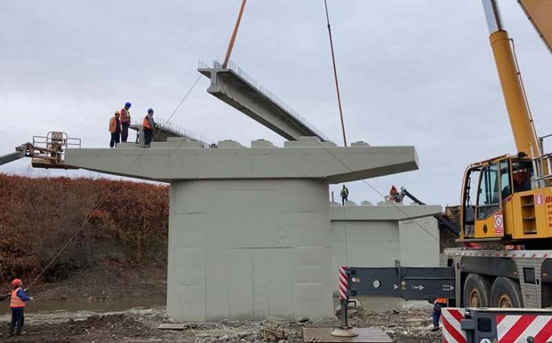Foto Lucrările la podul peste Arieș din Turda, în grafic. Se montează grinzile pe ultimul tronson