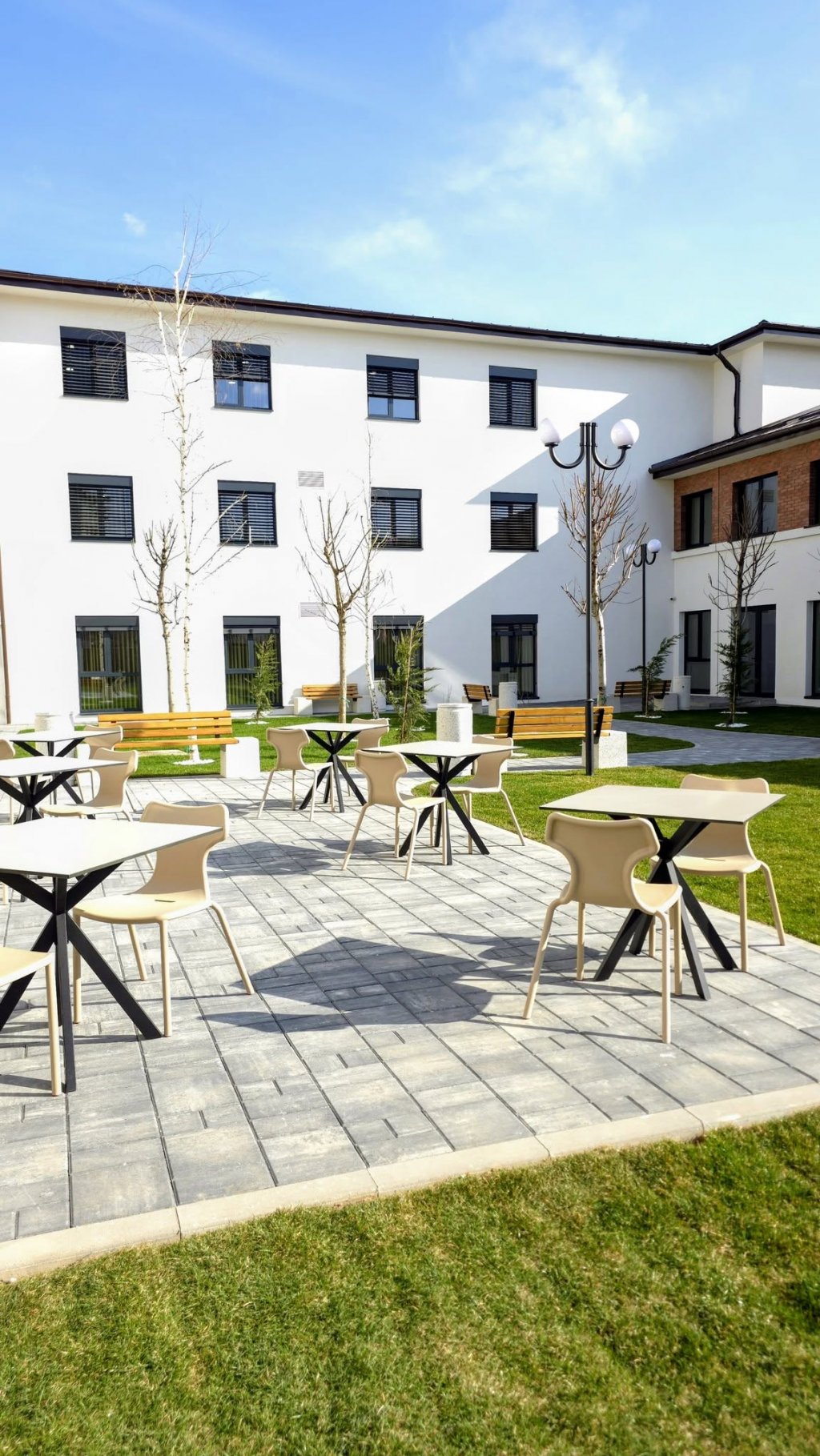 Căminul oferă 70 de locuri de cazare, în 42 de camere spațioase, într-un spațiu modern și adaptat nevoilor persoanelor vârstnice. Beneficiarii au acces la: cabinete medicale, sală de mese, bibliotecă spații de relaxare, zone exterioare amenajate pentru mișcare și petrecerea timpului în aer liber. Spațiile sunt gândite pentru a oferi siguranță, confort și un mediu adecvat nevoilor zilnice ale seniorilor.
