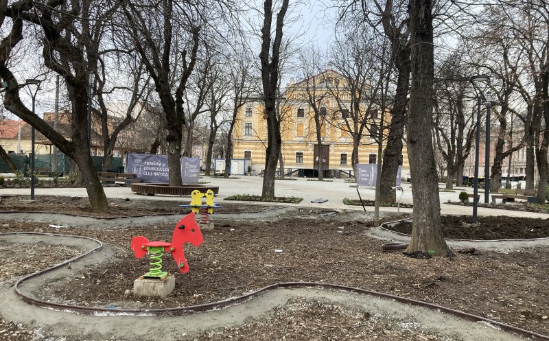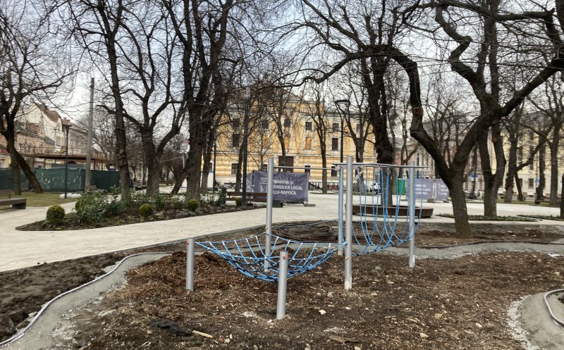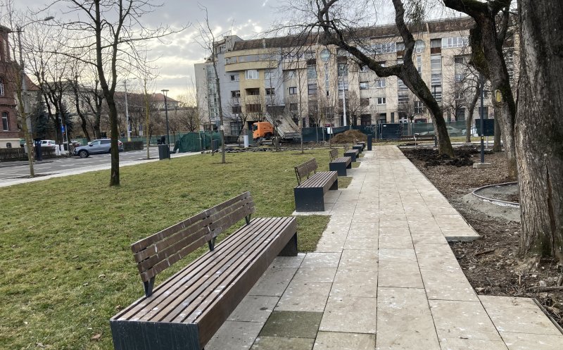 Parcul din spatele Teatrului Național, pe ultima sută de metri. Cum arată cu copaci noi, bănci și jocuri de copii