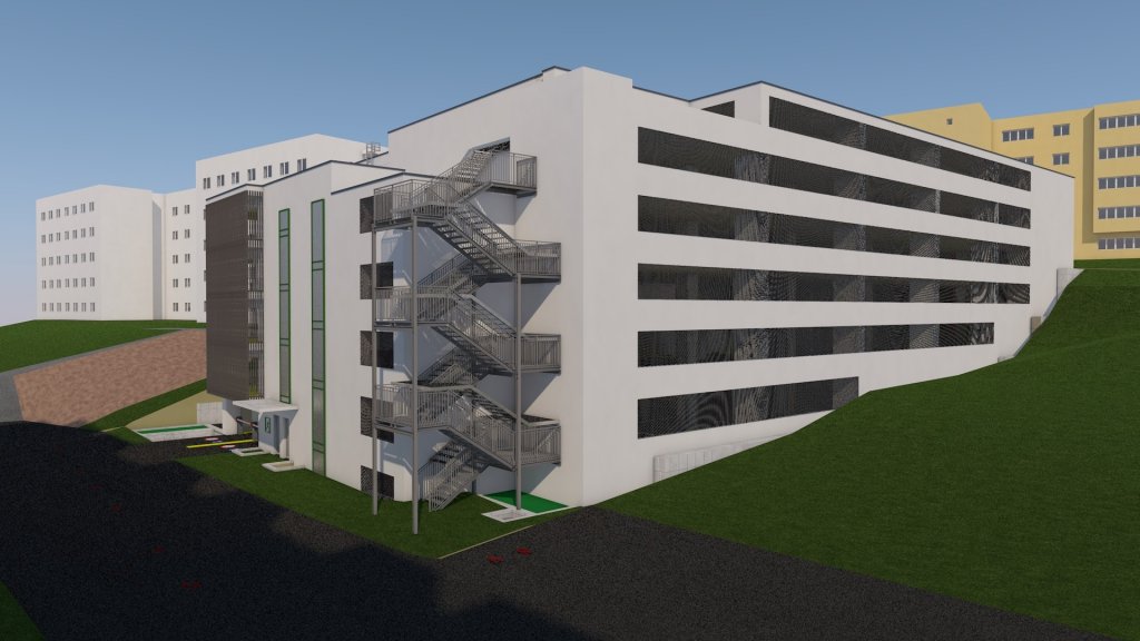 Parkingul va avea două niveluri de subsol, parter, 5 etaje și un etaj parțial și 379 de locuri de parcare, dintre care: 16 pentru persoane cu dizabilităţi plus 4 de locuri motociclete/mopede şi 60 de locuri pentru biciclete.
