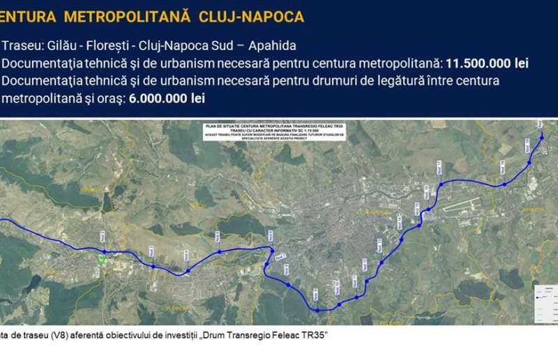 Documentaţia tehnică şi de urbanism necesară pentru centura metropolitană costă 11,5 milioane de lei, iar documentaţia necesară pentru drumurile de legătură între centură şi oraş este de 6 milioane. Centura va porni de la centura Gilăului spre Florești, apoi trece prin spatele cartierelor Mănăştur, Zorilor, Bună Ziua, Gheorgheni, Someşeni, până spre Apahida.