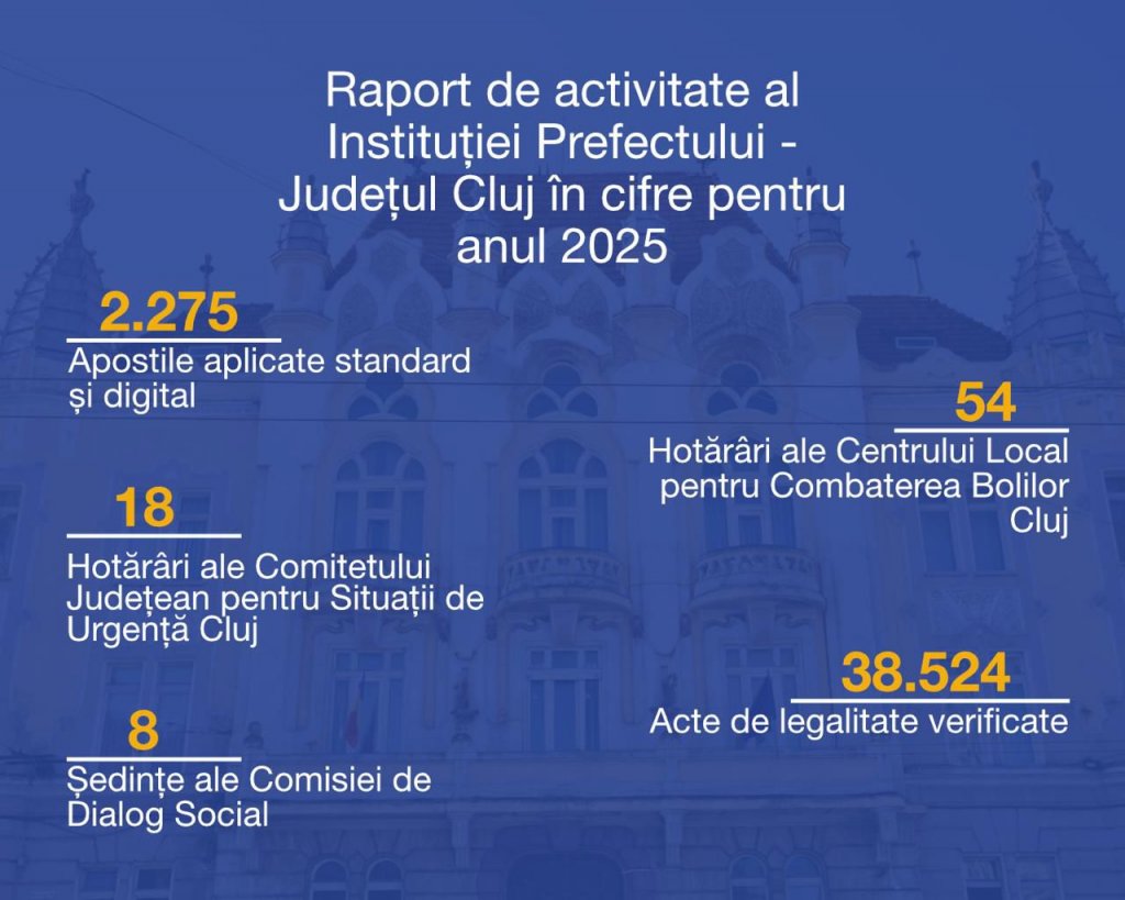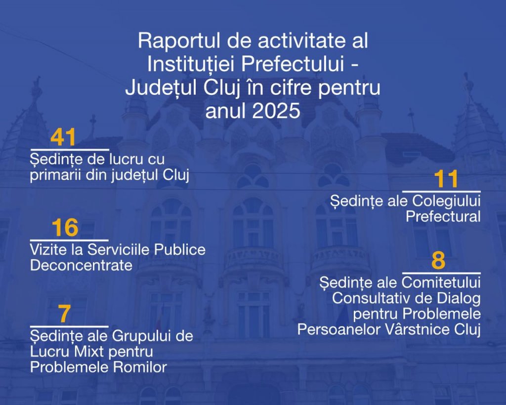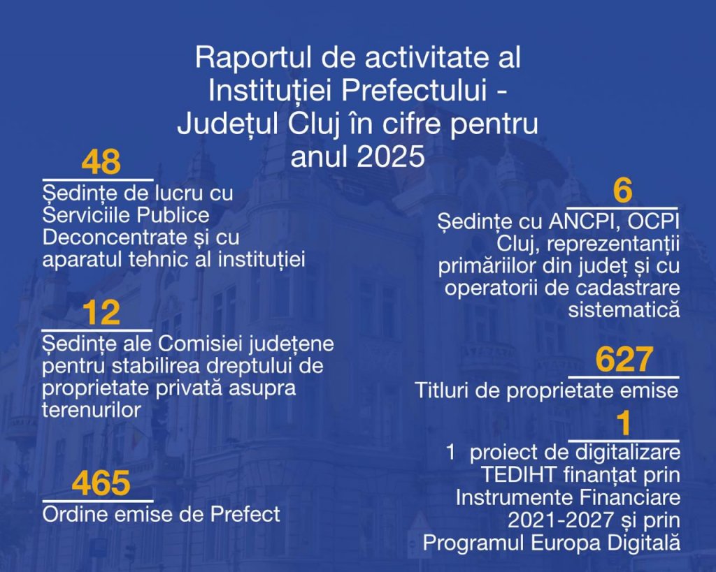 Instituția Prefectului Județul Cluj a prezentat raportul de activitate pentru anul 2025, un an marcat de eforturi constante pentru apropierea administrației de cetățeni și pentru răspunsuri concrete la nevoile comunităților locale.