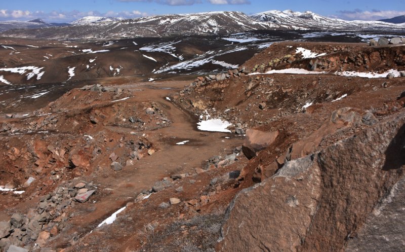 ''Vom prezenta succesiv identificarea rocilor de câmp. Auftaktul revine bazaltului brun, o rocă magmatică, în acest caz de proveniență din Anatoliană, zona satelor Kale și Akkonyunlu situate în preajma orașului Afyon (Turcia), vestită pentru extracțiile de marmură. Culoarea omogenă maronie-gri, rezistența ridicată și prelucrarea buciardată și periată cu aspect de piele sunt principalele valențe pentru care s-a optat pentru aceasta'.