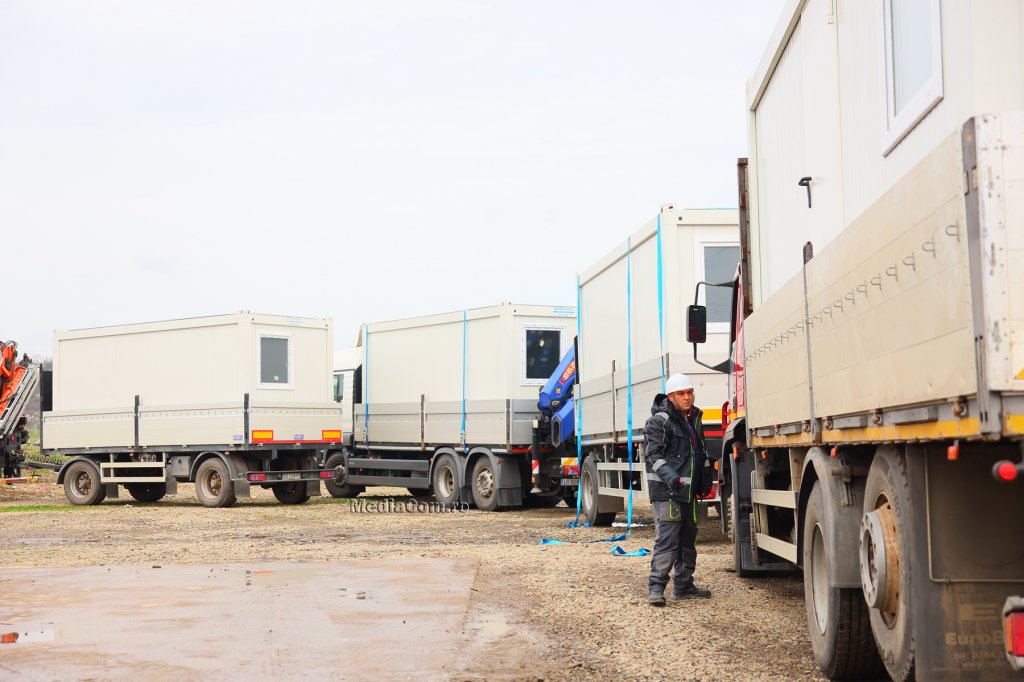 Primele module de locuit destinate familiilor afectate de incendiul de pe strada Margaretelor, instalate pe poziții
