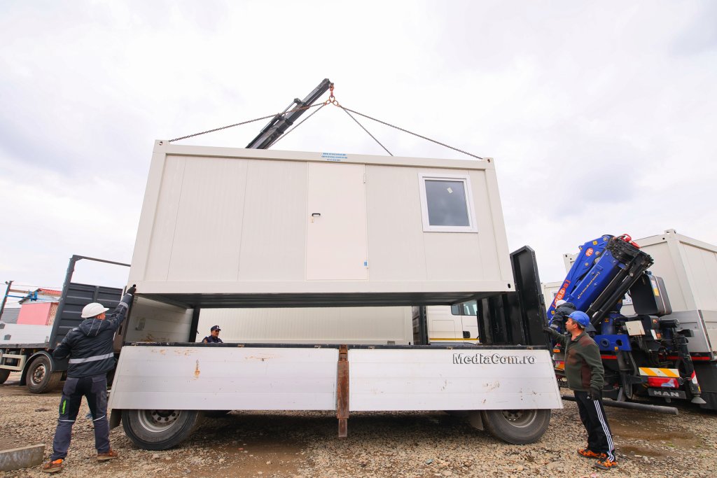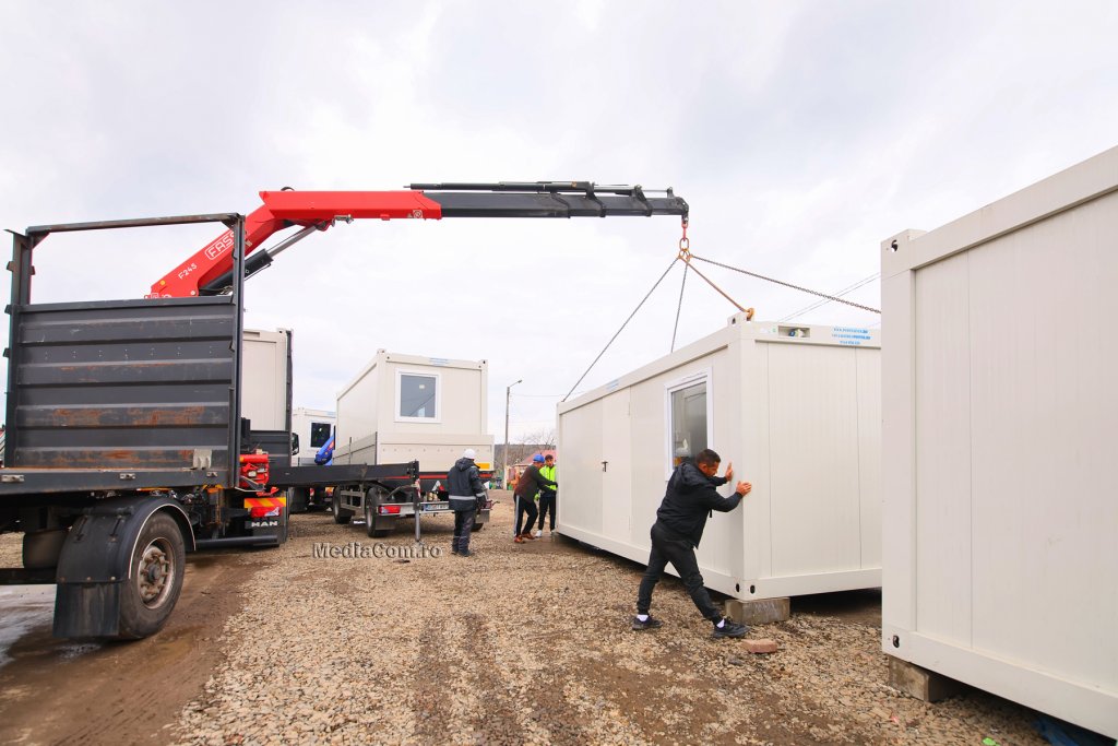 Primele module de locuit destinate familiilor care au pierdut totul în incendiul de pe strada Margaretelor, instalate pe poziții