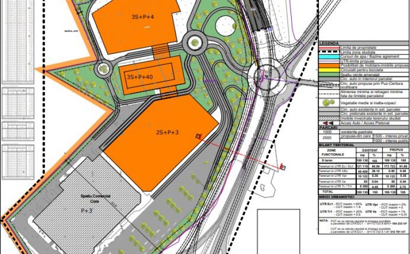 POT-ul maxim propus rămâne cel stabilit prin PUG, aferent UTR Ec, adică 60%, iar CUT-ul propus este de maxim 1,8.