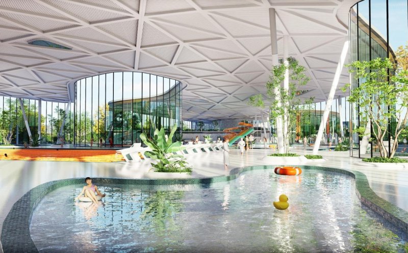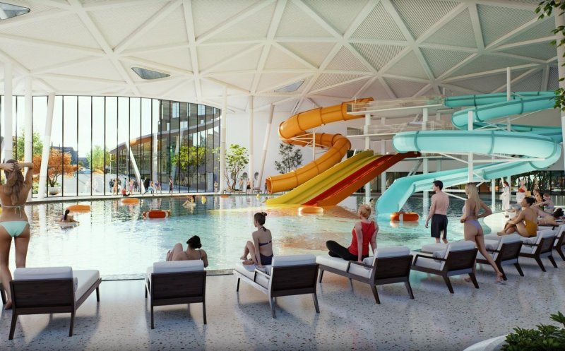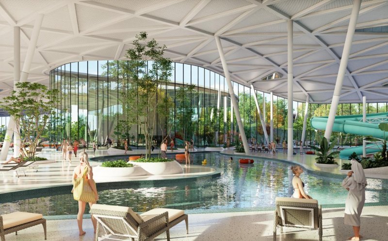 Se propune, așadar, dezvoltarea unui ansamblu cu funcțiuni mixte, care va include un hotel de 5 etaje cu 200 de camere, un centru SPA cu zonă de tratament și facilități de tip aquapark, o sală de evenimente și funcțiuni complementare. Zona de tratament și SPA ar urma să includă 10 bazine, pe o suprafață de aproximativ 15.000 de metri pătrați. Din suprafața totală de 5,1.hectare, aproximativ 36% este destinată construcțiilor, peste 35% spațiilor verzi amenajate, iar restul circulațiilor pietonale și auto.
