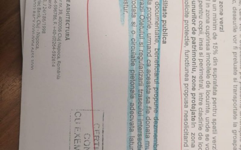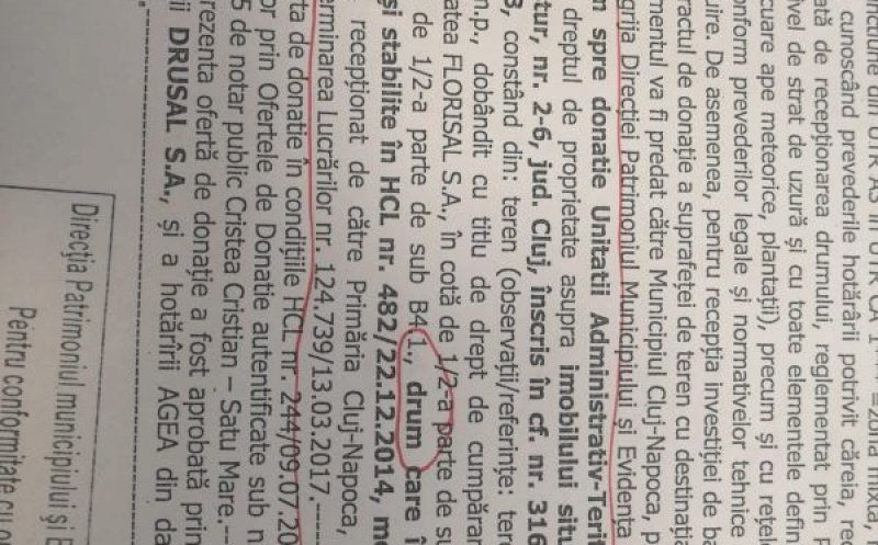 - Extras foto din oferta de donație drum, semnată de firma dumneavoastră, prin care dumneavoastră, fără bani, donați acest teren orașului", a transmis municipalitatea clujeană.