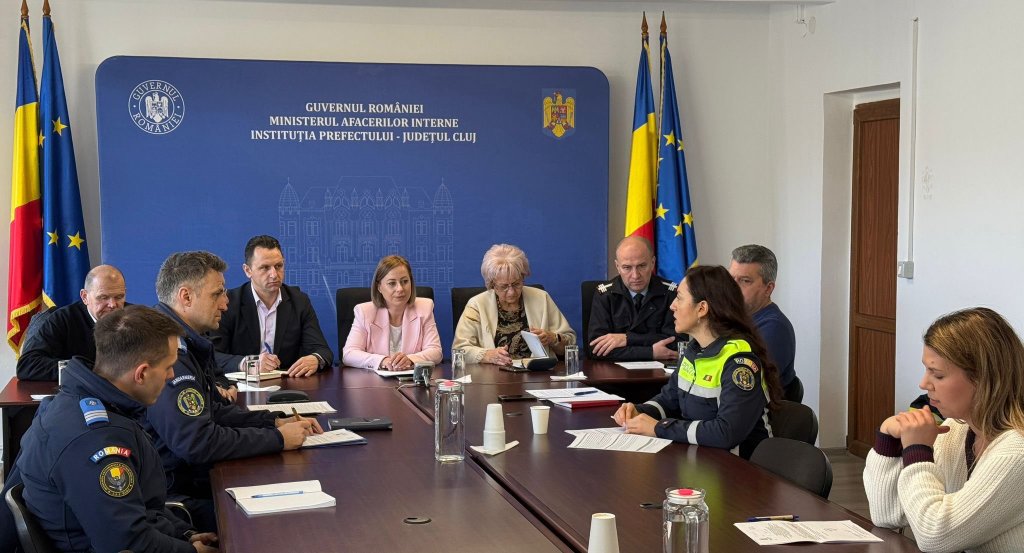 O ședință de lucru privind siguranța în unitățile de învățământ preuniversitar din județul Cluj a avut loc astăzi la Instituția Prefectului, sub conducerea prefectului Maria Forna.