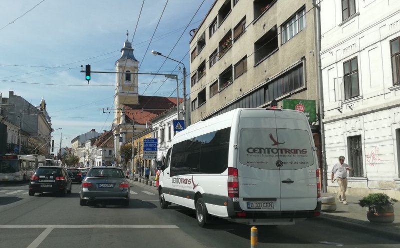 Șoferul acestui microbuz a înțeles, de exemplu, că banda dedicată transportului în comun i se adresează. E adevărat, și el face transport în comun, dar pe rute județene. Ca urmare, omul a decis să folosească banda bus de pe Bulevardul 21 Decembrie.