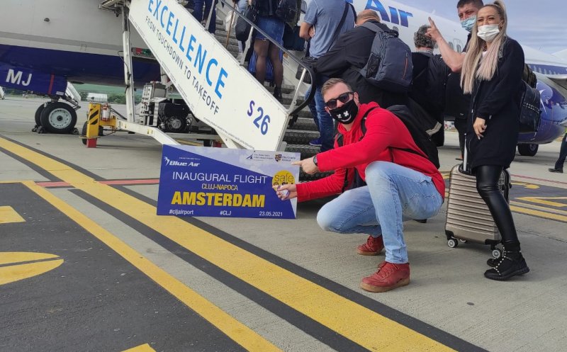 Blue Air, cea mai mare companie aeriană românească după numărul de pasageri transportați cu un model de business Ultra - Low – Cost și cu abordare centrată pe nevoile pasagerilor, operează în prezent 4 rute regulate de pe Aeroportul Internațional „Avram Iancu” Cluj, spre București Otopeni, Dublin, Barcelona și Paris Charles de Gaulle, la care se alătură destinația Amsterdam începând de astăzi, 23 mai 2021.