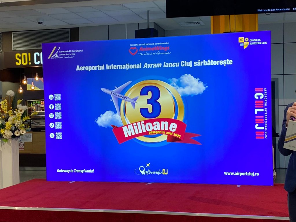 Aeroportul Internațional „Avram Iancu” Cluj a atins joi, 6 noiembrie 2025, pragul de 3 milioane de pasageri înregistrați, marcând pentru al treilea an consecutiv această performanță remarcabilă.