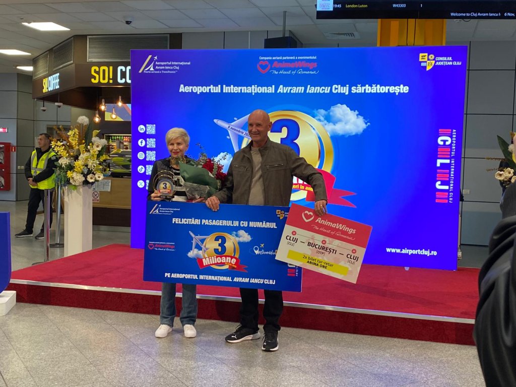 Foto Cine este pasagerul cu numărul 3 milioane la Aeroportul Cluj. Prima călătorie cu Animawings i-a adus un premiu