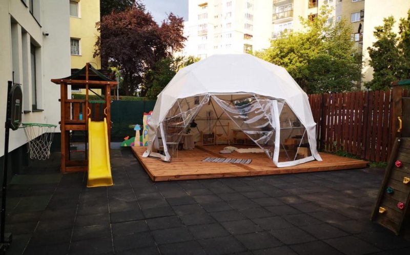 Un alt demers esențial pe care l-am finalizat a fost reorganizarea spațiilor exterioare prin amenajarea unor zone pentru cursuri în aer liber. Am găsit varianta de EduDom ca fiind cea mai practică, flexibilă și atractivă soluție pentru copii și profesori. Am creat, împreună cu cei de la Wow, un arhitect și un inginer proiectant, soluții individualizate de Edu-foișoare și de amfiteatre de învățare în aer liber.