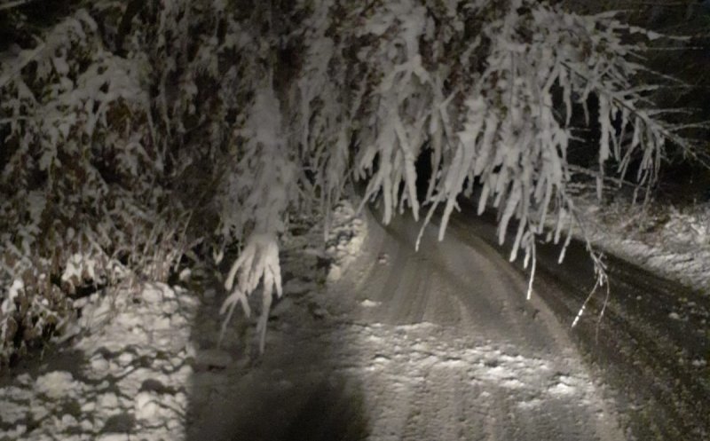 . La fața locului a acționat o autospecială pentru înlăturarea arborilor și ramurilor doborâte de acumulările mari de zăpadă, în urma precipitațiilor căzute recent.