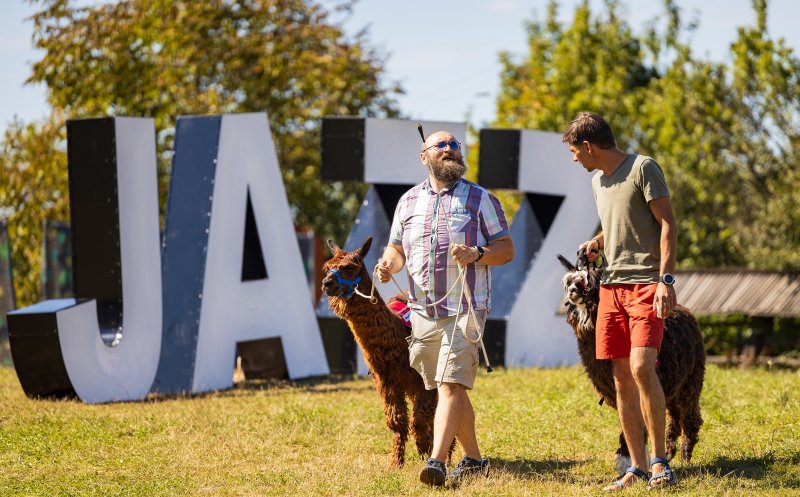 Doi masculi alpaca au fost invitați speciali în cea de-a doua zi a festivalului. Jazz in the Park este un eveniment pet friendly, așa că accesul cu animale de companie este permis.