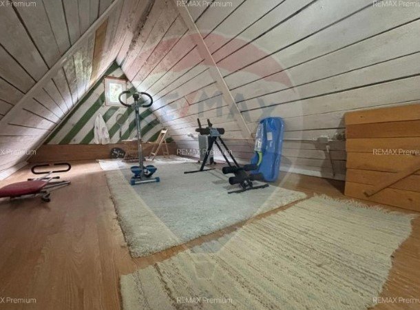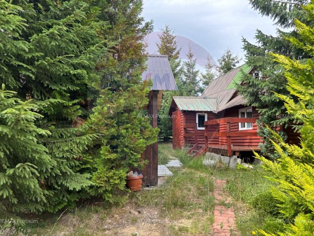 - Teren: 500 mp (extravilan), împrejmuit cu gard și vegetație decorativă (tuia, brazi, pini)