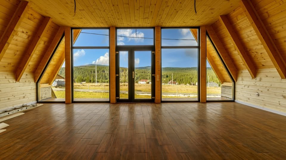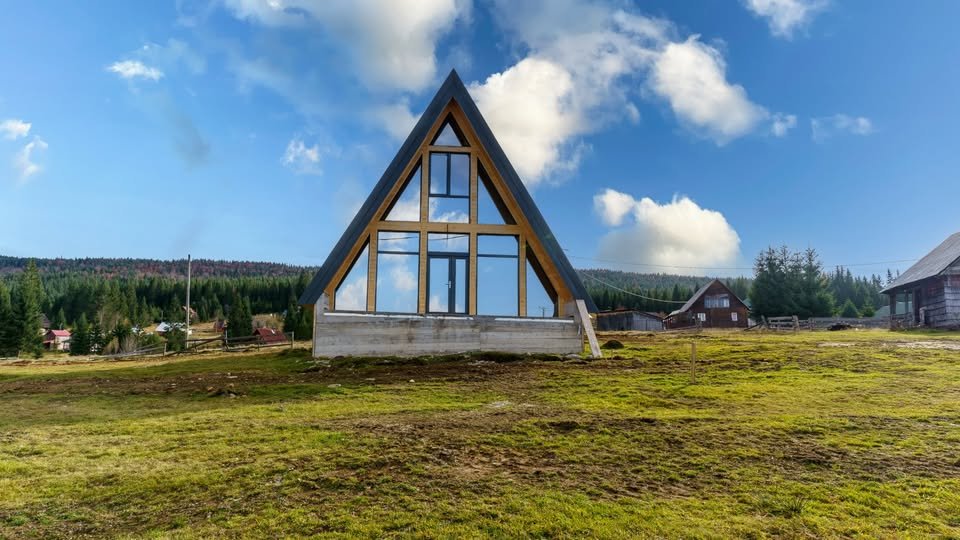 De vânzare două cabane A-Frame, amplasate într-un cadru natural spectaculos, ideale pentru dezvoltarea unui business de cazare tip Airbnb / Booking sau retreat montan.