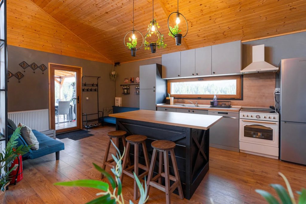 "Construită recent, în 2024, pe un teren generos de peste 3.000 mp, proprietatea a fost concepută ca un chalet modern, capabil să funcționeze la fel de natural atât ca reședință privată de vacanță, cât și ca destinație boutique de ospitalitate. Livingul cu înălțime dublă constituie punctul central al casei, oferind o ambianță aerisită și elegantă, completată de zona de dining și de bucătăria complet echipată, gândite pentru socializare și confort pe termen lung.