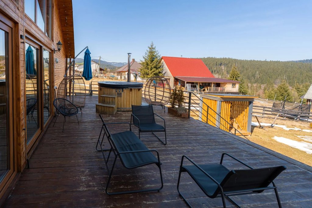 Zona de noapte este organizată în cinci dormitoare, fiecare cu baie proprie, o configurație ideală pentru găzduirea simultană a mai multor familii sau grupuri. Terasa panoramică extinde spațiul interior către natură, iar zona exterioară cu jacuzzi și foc de tabără creează un cadru propice relaxării pe tot parcursul anului, fie că este vorba despre serile răcoroase de vară sau despre peisajele spectaculoase ale iernii montane. Terenul generos oferă, de asemenea, spații verzi ample pentru relaxare și activități în aer liber, inclusiv zone potrivite pentru familii și copii", se arată în anunțul de vânzare.