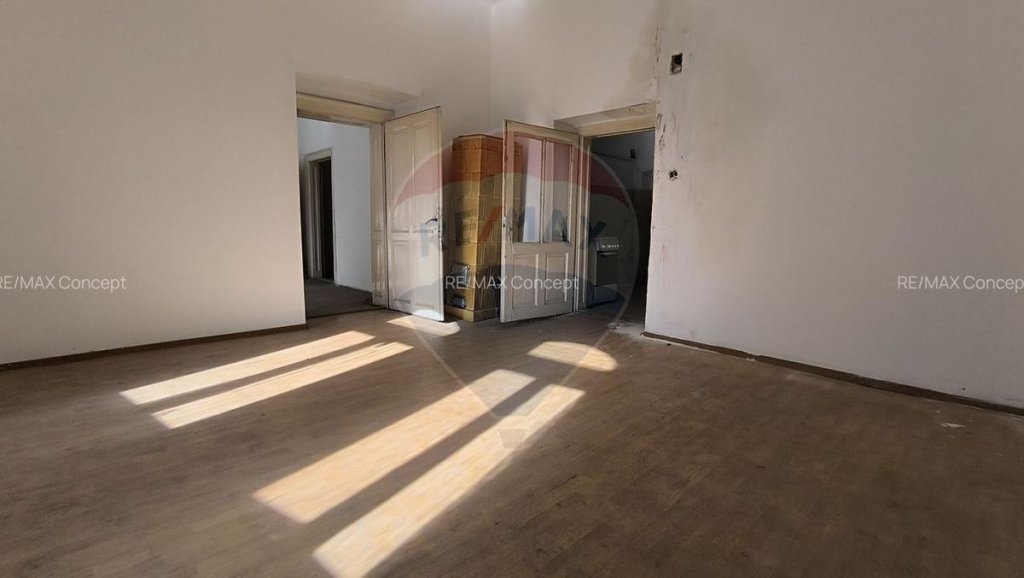 Apartamentul scos la vânzare dispune de trei camere, o suprafață de aproximativ 91 mp și este situat la demisol, necesitând renovare.