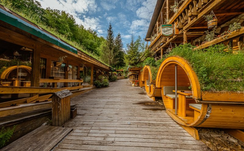Proprietatea este perfect proiectată și echipată pentru evenimente corporate și private; are suprafețe ample cu iarbă pentru petreceri în grădină și restaurant cu capacitate de 300 persoane. Camera cu sare, sauna, șemineul, șezlongurile din iarbă sau ciubărul sunt prilejuri de relaxare sau socializare, după voie. Apoi sunt separeurile de luat masa construite într-un butoi, sauna din butoi și jacuzzi în ciubărul care poate fi practic asimilat unei jumătăți de butoi - toate elemente care creionează o atmosferă de poveste potrivită atât pentru team buildings și nunți cât și pentru concedii în natură (cei mici au un minunat parc dar și loc de joacă în interior, pentru cei mari există airsoft, paintball, remi, table, șah, cărți de joc, acces wireless sau un bar bine garnisit și o terasă generoasă cu 80 de locuri în aer liber și 36 lucuri acoperite).