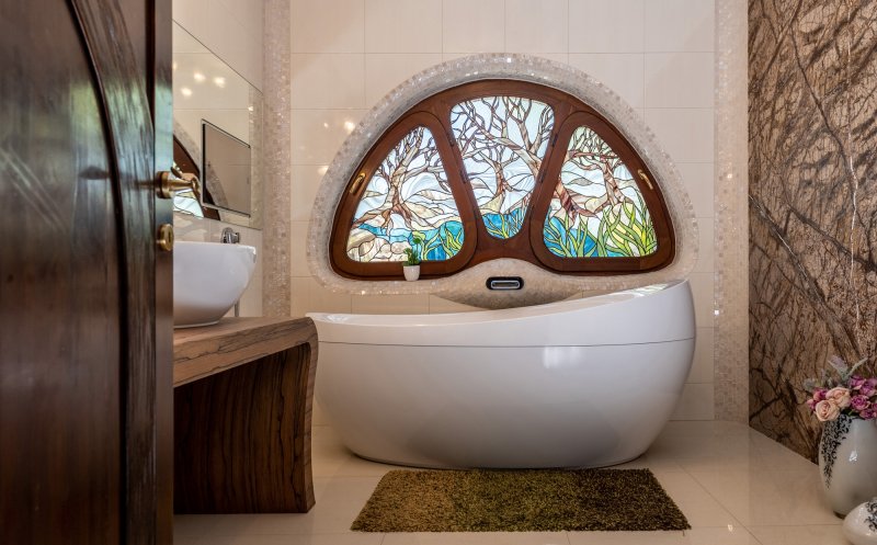 Foto Cu câte se vinde "Casa fără colțuri" din Cluj: tâmplărie lemn Larice siberian, vitralii în tehnica Tiffany, mozaic Bisazza şi picturi Art nouveau