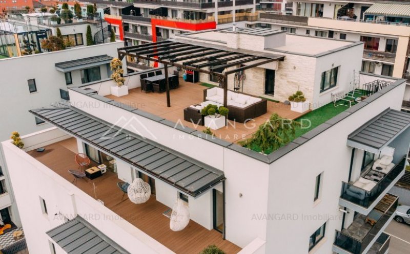 "Penthouse-ul se intinde pe o suprafata extrem de generoasa 178 mp utili, desfasurata pe 2 niveluri cu scara interioara, iar accesul in interior se face printr-un lift de ultima generatie care poate fi accesat doar de catre proprietari. Balcoane de 11.4 mp plus terasele acestuia in suprafata cumulata de 236 mp care sunt amenajate ca oaze urbane de relaxare pentru familie si prieteni, beneficiind de intimitate si de facilitatile unei curti (grill, sezlonguri, plante, etc.)