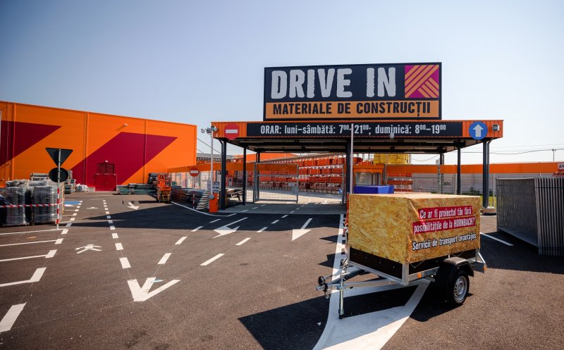 - 6.900 de metri pătrați reprezintă suprafața Drive In-ului, acolo unde clienții pot găsi toate materialele necesare construcției unei case sau realizării unui proiect de orice tip: izolații, gipscarton, ciment, șape, mortare, adezivi, tencuieli, țiglă metalică, ceramică sau din beton, panouri sandwich, sisteme pluviale, canalizare, cărămidă, BCA, coșuri de fum, pavaje, betoniere, lemn pentru construcții și multe altele.