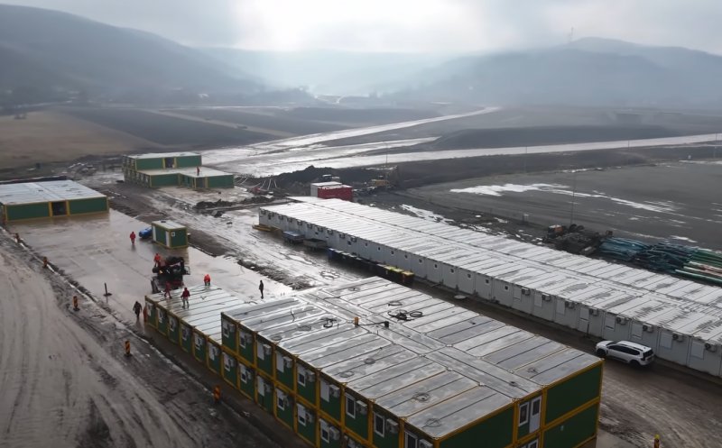 Imaginile filmate din dronă de Cristian Marius Man în urmă cu câteva zile surprind muncitorii lui Umbrărescu din nou la treabă, printre noroaiele de pe șantierul de la Zimbor: se instalează noi containere, ceea ce poate însemna că, în primăvara asta, vor ajunge mai mulți oameni să pună umărul la loturile de autostradă care leagă Clujul de Sălaj.