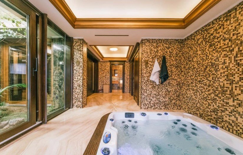 Printre facilitățile oferite se numără o zonă SPA complet amenajată, precum și o piscină încălzită, elemente care transformă locuința într-un spațiu dedicat relaxării.