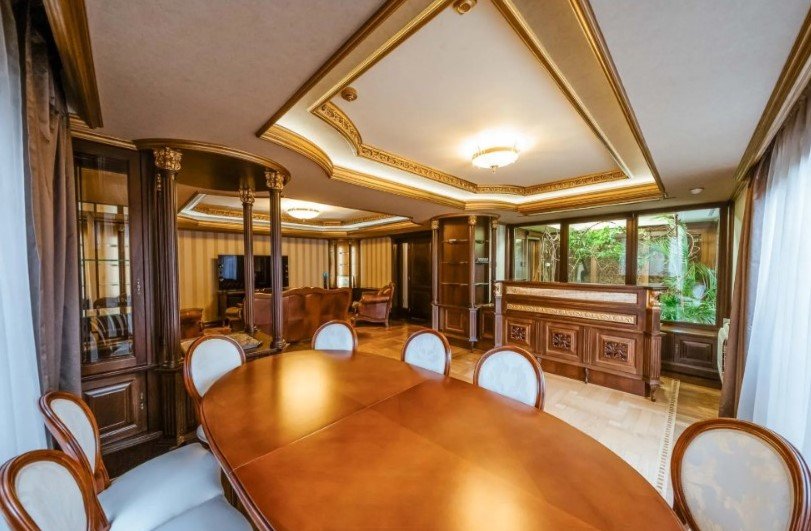 Reședința, cu o suprafață utilă de 710 mp, se remarcă printr-un mix de eleganță clasică și elemente moderne, evidențiate prin finisaje premium, parchet din lemn masiv, marmură și mobilier realizat la comandă. Proprietatea include sisteme inteligente de gestionare a iluminatului, temperaturii și securității.