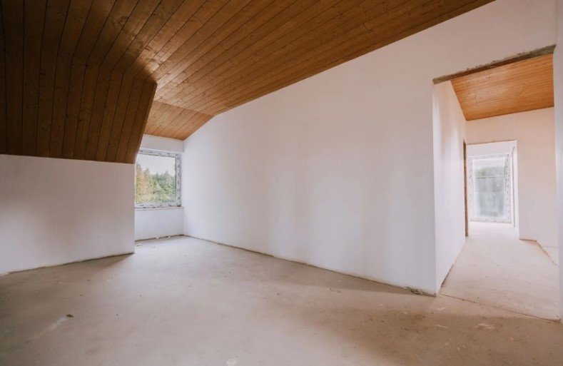La interior, casa se predă cu pereții finisați, oferind viitorului proprietar libertatea de a personaliza complet amenajarea, în funcție de preferințe sau de strategia investițională. Proprietatea dispune de încălzire în pardoseală cu pompă de căldură aer-apă, instalații electrice realizate la poziție conform proiectului arhitectural, alimentare cu apă din puț forat și racord la rețeaua de electricitate.