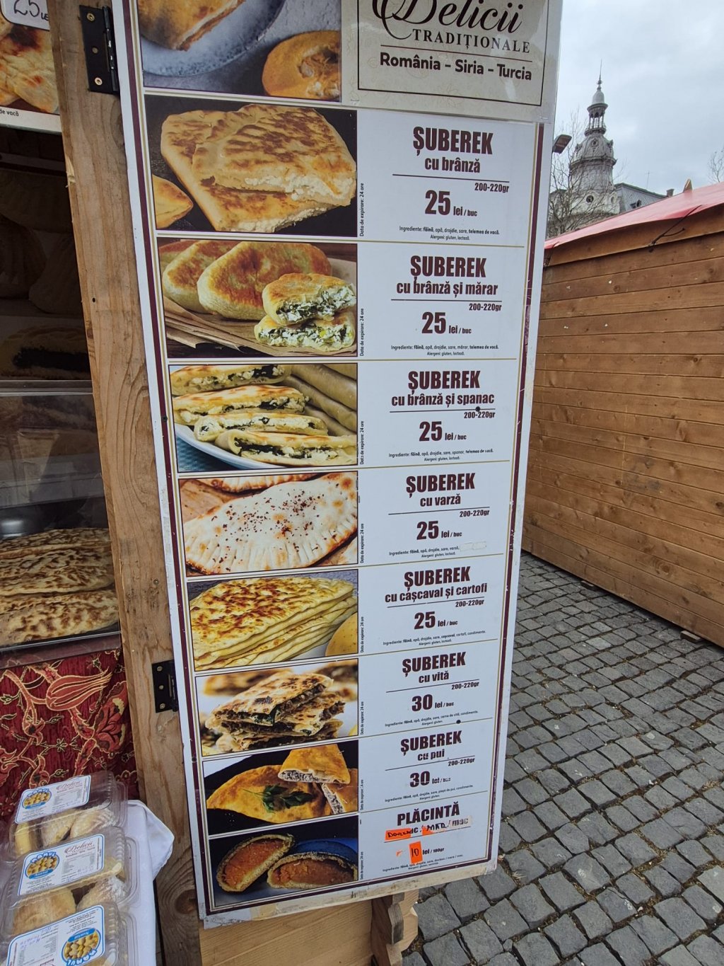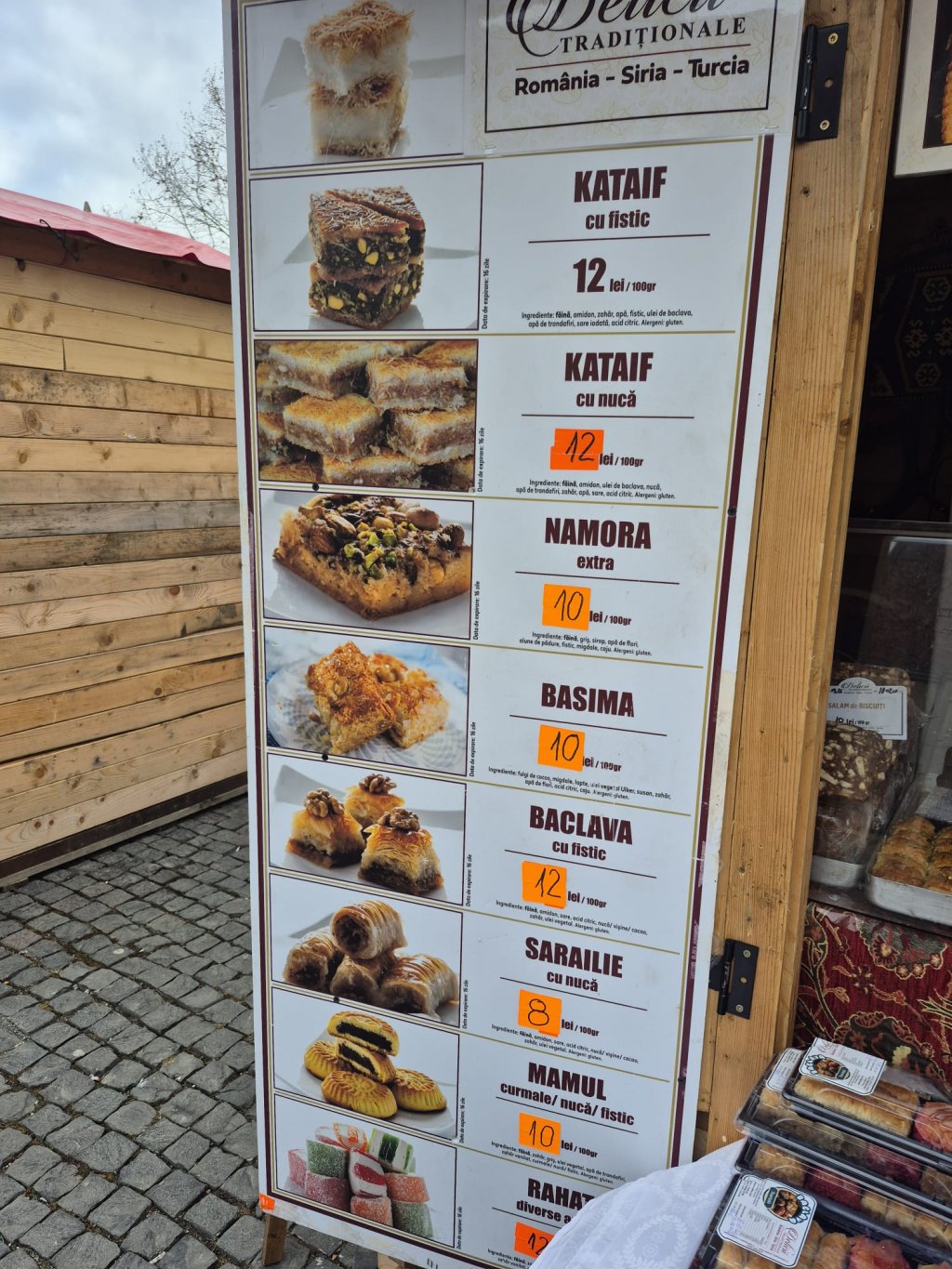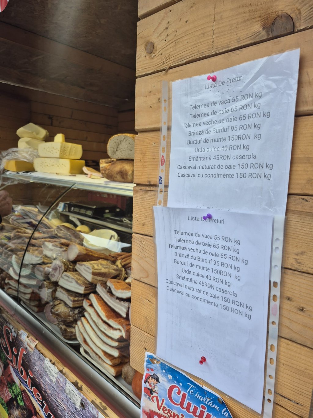 De la târgurile de mărțișoare nu lipsesc nici preparatele tradiționale, plăcintele, langoșul, ciocolata de casă, dar și preparatele cu kataif sau șuberekul. Un baton de ciocolată de casă e 10 lei, un langoș cu cașcaval sau telemea e 20 lei, iar o plăcintă cu telemea tot 20 de lei. Pentru produsele tradiționale, clujenii trebuie să plătească 55 lei/kg pentru telemea de vacă, 95 lei/kg pentru brânza de burduf sau 150 lei/kg pentru cașcavalul maturat de oaie. De asemenea, costița afumată e 12 lei/100 gr, cârnații picanți 12 lei/100 gr, iar curcanul copt la jar e 18 lei/100 gr. La căsuțe se găsesc și produse mai puțin tradiționale românești: kataif cu fistic 12 lei/100 gr, namora 10 lei/100gr, baclava cu fistic 12 lei/100 gr, șuberek cu brânză 25 lei/buc sau șuberek cu varză 25 lei/buc.