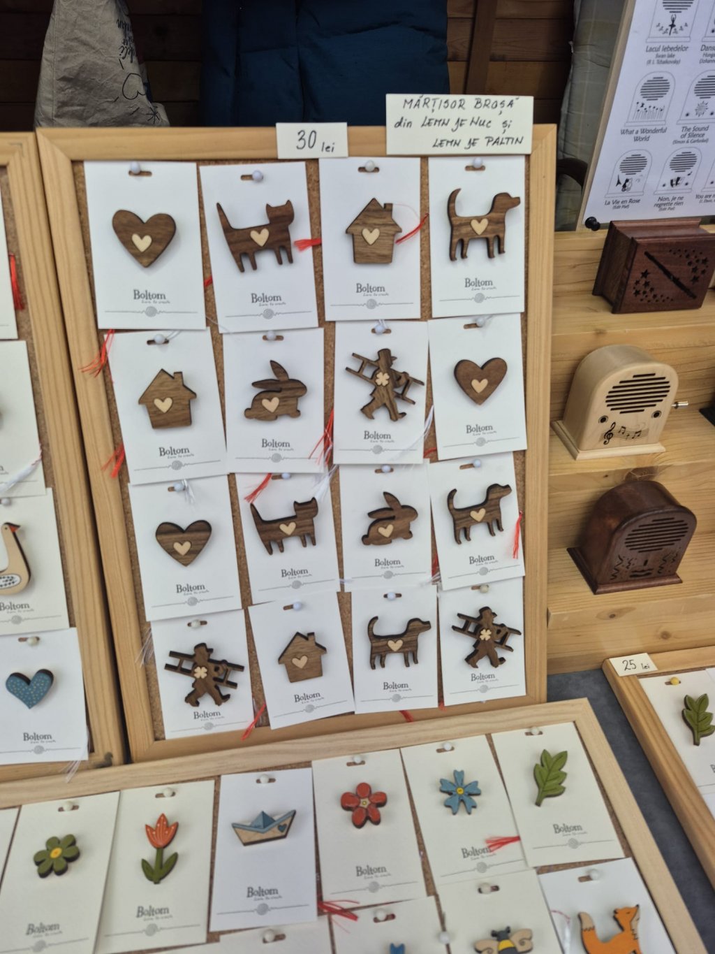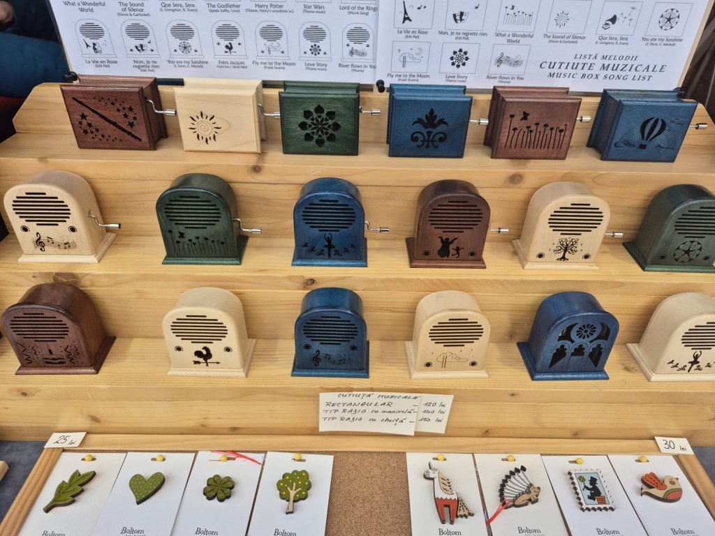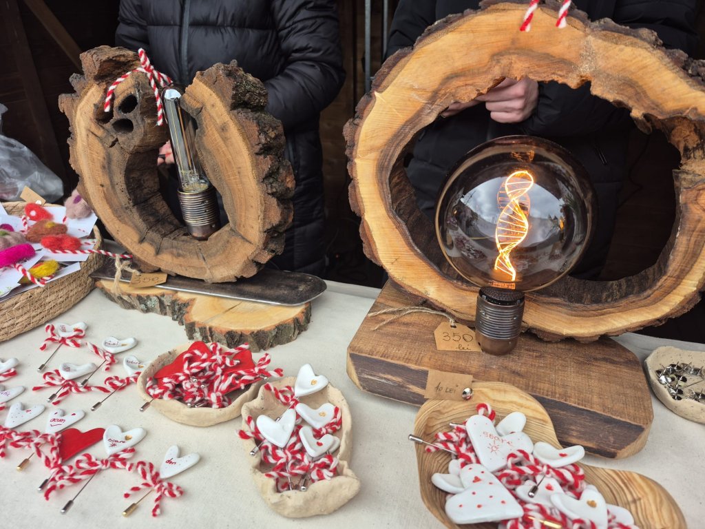 Printre cadourile care atrag privirile la târguri se numără cutiuțele muzicale, disponibile la prețuri între 120 și 150 de lei, dar și lămpile din lemn lucrate manual, care ajung la 350 de lei. Pentru cei care preferă variantele eco, se găsesc mărțișoare realizate din hârtie recuperată, de la 10 lei, dar și modele din hârtie creponată, cu prețuri de 28–30 de lei.
