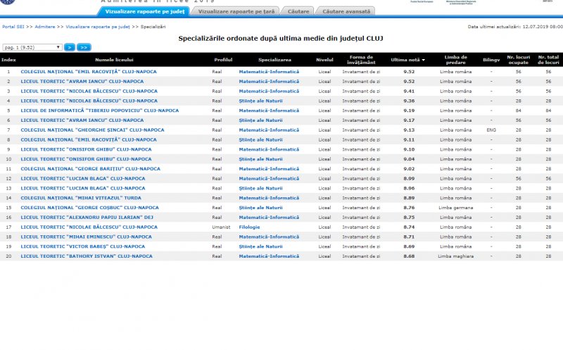 - Liceul de Informatică "Tiberiu Popoviciu"– 9.19